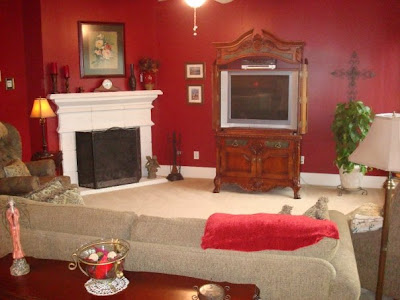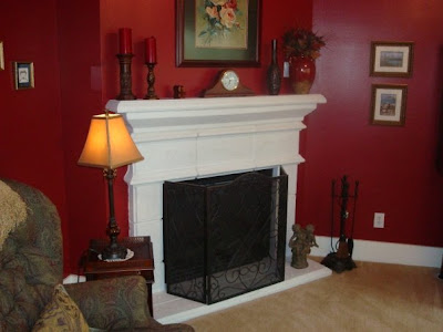 Shot of the fireplace when we made our offer. Needless to say I started priming this room the day we closed on the house. It took me 2 days, 3 coats of primer and 3 coats of paint to cover the red.