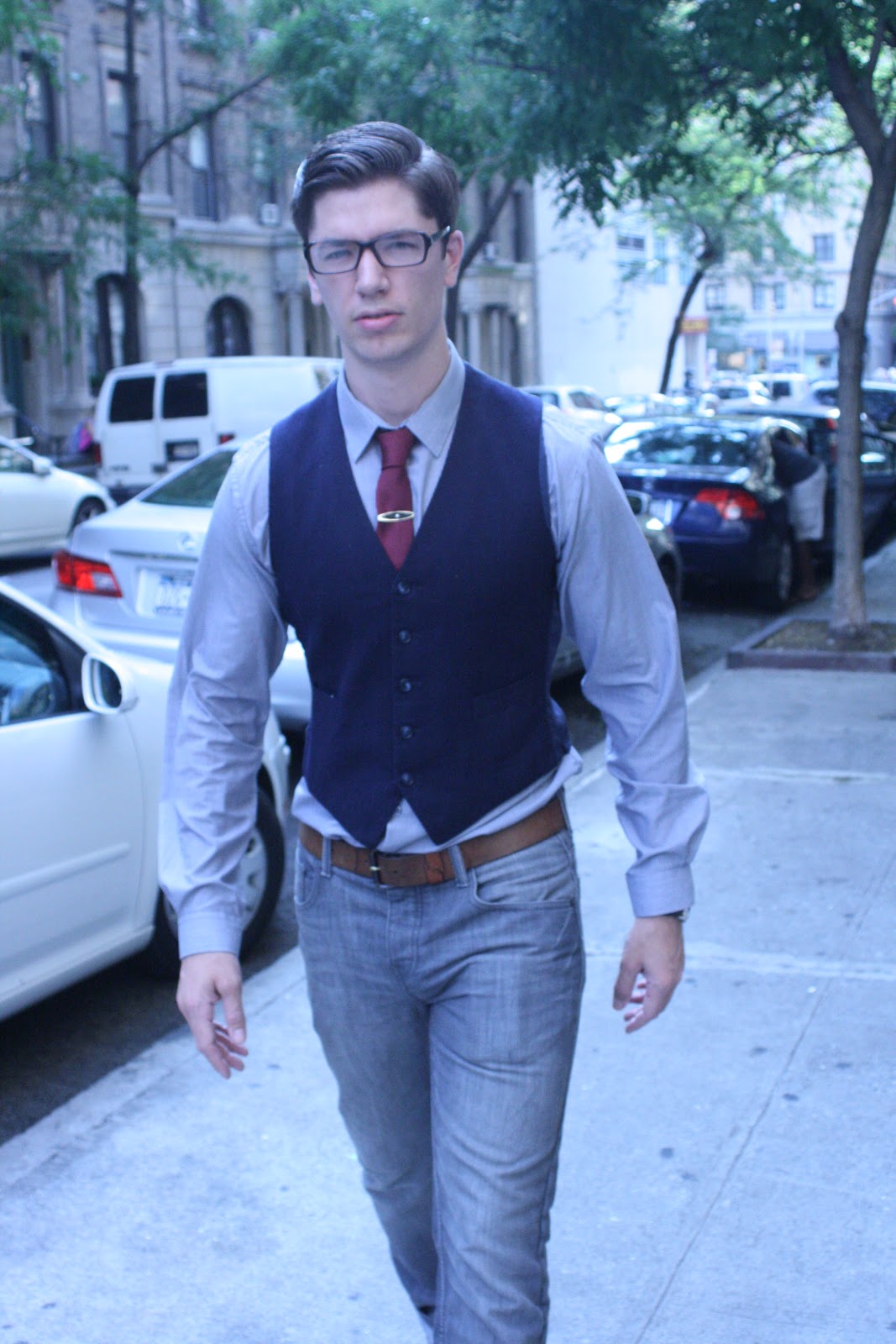 Menswear Wednesday By Rachel Golberg | September 5, 2012 Today is going to be wordless Wednesday. Because my 4 day weekend wasn’t long enough. Enjoy looking and my handsome Hubs. The Deets: Vest: Vintage, The Frayed Hem (Scotland) Shirt: Primark Jeans: Primark Tie: Primark Tie Bar: Vintage About Rachel Golberg I'm a city girl adjusting to life in a small Minnesotan town. I'm so glad you stopped by. Posted in His Fashion, Uncategorized